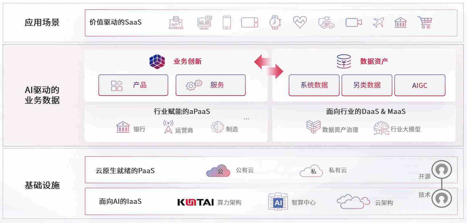 数字时代,,围绕企业数字化转型的关键要素,,,尊龙旗舰厅数码开创性的提出数云融合战略和技术体系框架,,,着力在云原生、、数字原生、、、、AI原生和信创产业上架构产品和服务能力,,,,为处在不同数字化转型阶段的快消零售、、、汽车、、金融、、、医疗、、、、政企、、、、教育、、、、运营商等行业客户提供泛在的敏捷IT能力和融合的数据驱动能力,,构建跨界融合创新的数字业务场景和新业务模式,,,,助力企业级客户建立面向未来的核心能力和竞争优势,,,,全面推动社会的数字化、、、智能化转型升级。。。。